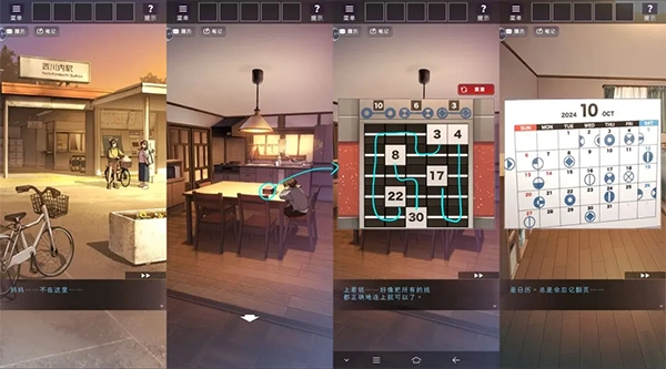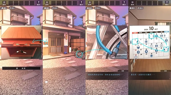 随后使用自行车前往车站,完成对话后回到客厅,通过日历提示解锁桌面上的盒子。