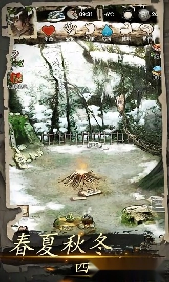 游戏设计高度还原现实—春夏秋冬四季分明,春天生气盎然资源丰富,冬天天寒地冻资源匮乏,物资采集,制作,需要合理安排。