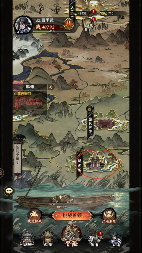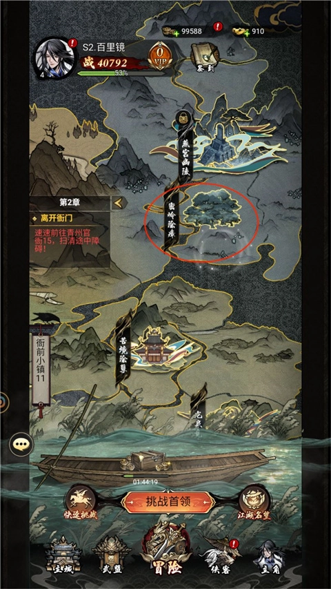 点击游戏界面下方的「冒险」选项,随后依照左侧的提示操作。