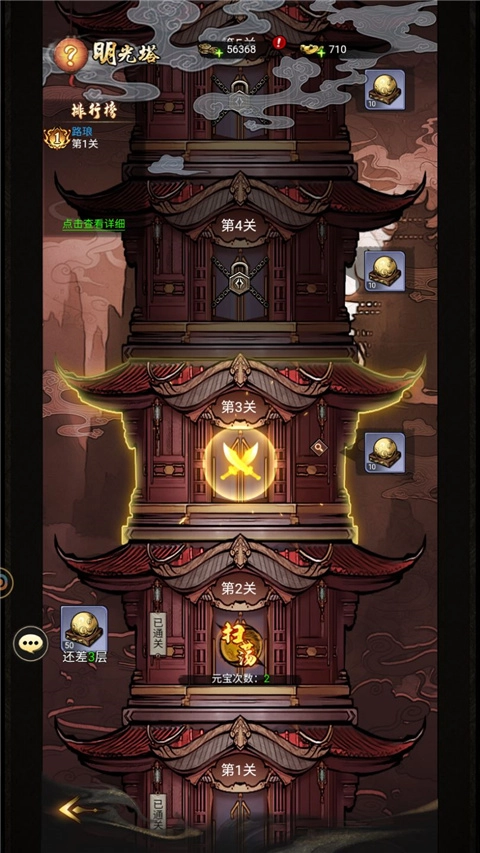 在【冒险】界面中,点击【明光塔】,就能挑选不同的塔楼展开攻略。