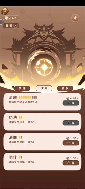 3、第一次地仙完成后,去星图里升级天赋里的功法,大概能升到两本同时用,然后再去一轮地仙重复上述操作,大概900-800年能拿下。