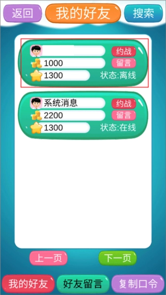 2、在我的好友板块中,你既能够借助右上角的搜索按钮寻找到自己的好朋友,也可以选择查看页面上展示的所有棋友信息列表。