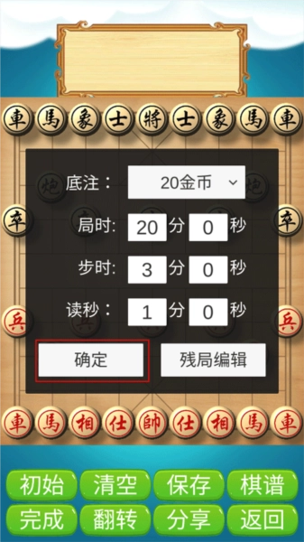 1首先,点击象棋神域中的创建房间选项,此时页面会呈现底注、局时、步时、读秒等信息设置区域。当你完成这些设置后,点击确定按钮,便可准备进入游戏。值得注意的是,在游戏正式开始前,棋盘中间会清晰显示房间号以及金币底注的具体数量。另外,在创建房间之前,你必须先拥有20个金币,只有满足这一条件,才能够成功开启房间。