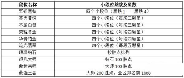 当排位等级升至钻石及以上,便不存在小段划分,排位升级规则依据胜点判定,每当胜点达到100,即可直接晋升一个大段位。