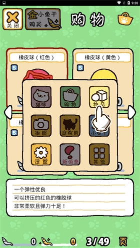 5、进了购物界面,找那个红色的皮球,用普通小鱼干就能买。