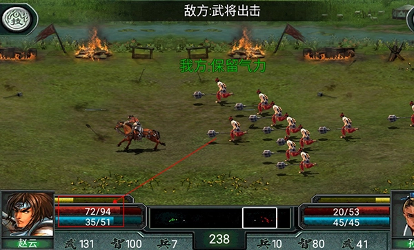 1、清楚本局的目的,是要消灭敌军士兵,还是敌将生命,有时1、2名武将的失败能换来一场战役的成功。