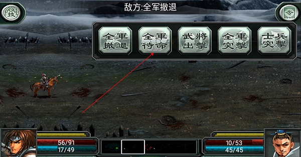 5、利用全军待命选择较好的战场位置,如将我方士兵前进至武将前方,然后待机保护我将。