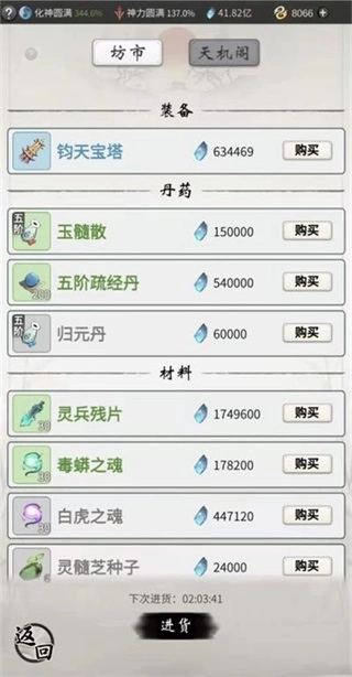 在天机阁,务必购买对应当前等级的修为福袋与修为秘药。要是拥有天机符,可用其刷新购买次数,但不太建议使用机缘来刷新。宝藏阁商店同样售卖修为秘药(此药服用不占服药次数限制),并且前两次刷新价格十分划算,建议每次买完。毕竟在这款游戏里,提升境界乃是最为关键的事情。