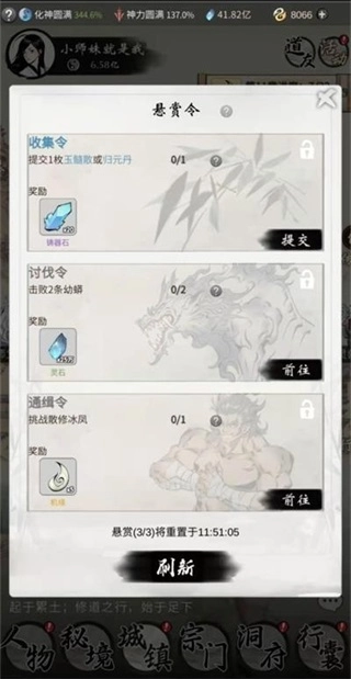 2. 对功法进行修习,可提升法术攻击力与真元,在突破之际还会增加气血。