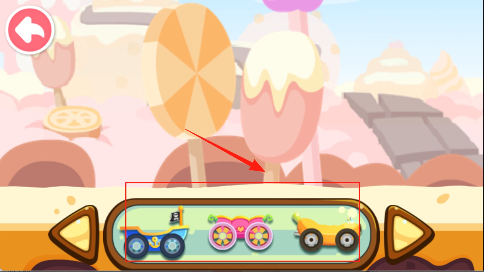 3、当你挑选好小汽车,便能够启程啦。只需动动你的小手指,在屏幕上左右滑动,就能操控小车车前进或后退哦。