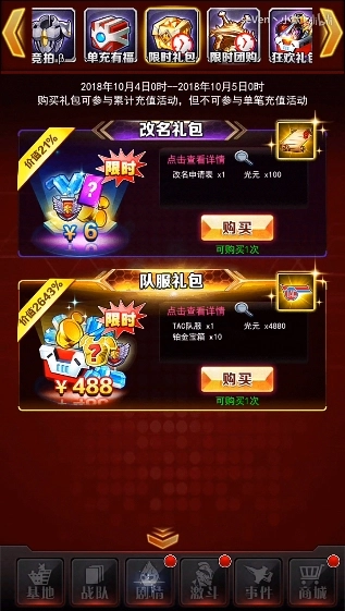 1. 在游戏里,每月会有一天或几天,限时礼包中会出售改名礼包。