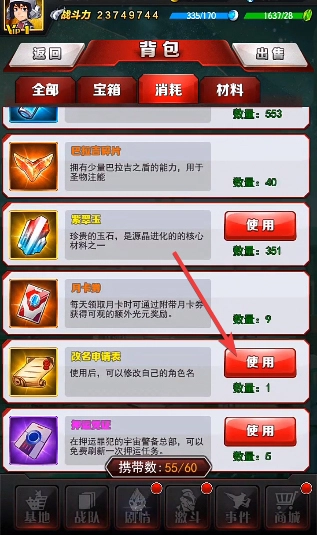 2. 购买礼包后,于背包里寻得【改名申请表】,点击进行使用。