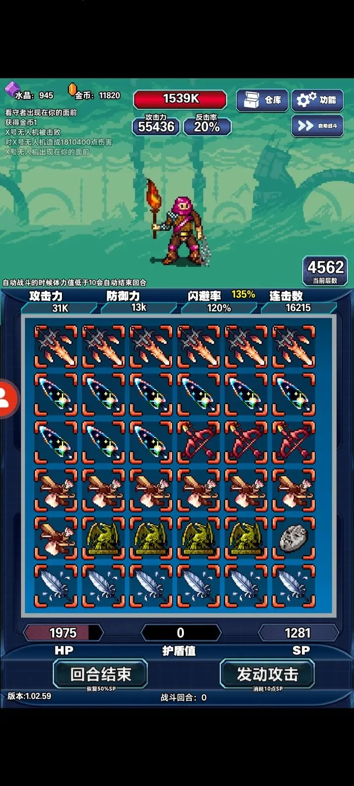 核心思路就是堆叠护身锦囊,让闪避达到100以上,闪避上限大概在130左右。留一个石像面具,用来应对反伤怪。剩余的格子则用来放置体力原精和破军光刃。要是你们对具体的配比感兴趣,可以自己列个公式计算一下,看看几个光刃搭配几个原精能实现最高输出。接着说黑武,拿取时只挑有用的,别贪图减血上限的,加闪避上限、减反击率都是很好的属性。目前我选择放弃破军光刃来拿黑武,这样基本闯过5000层不成问题,要是想继续往上冲,就比较看运气了。影响通关的参数主要是黑武数量和鸡汤数量。