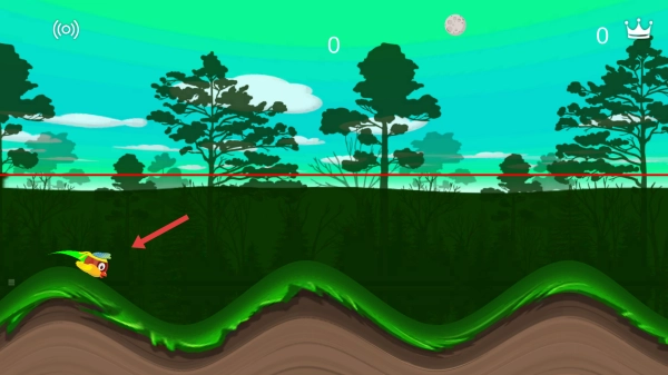 1. 在主界面点击“PLAY”,随后操控小鸟在起伏的地形上飞行。