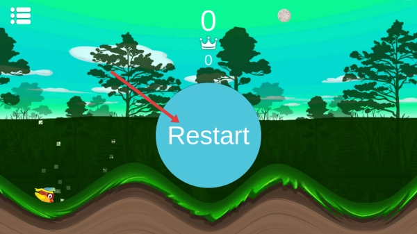 3、要是失败了,点击“Restart”重新开始,努力飞得更远,进而解锁新的小鸟。