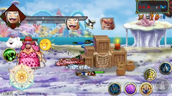 1、玩家能够从众多海贼王角色中挑选进行游玩,丰富多样的阵容搭配,将为你带来别具一格的对战乐趣。