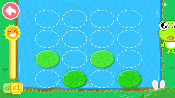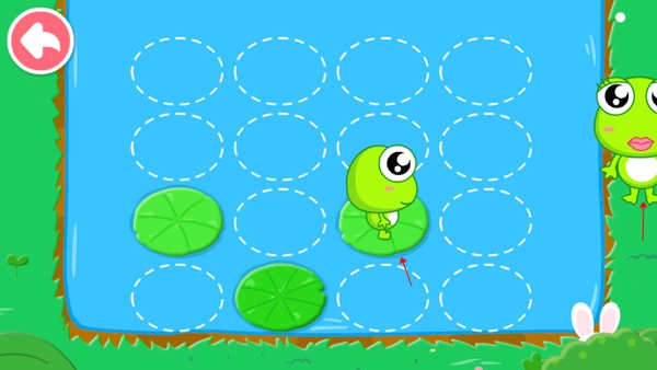 6、此刻,小青蛙得按顺序点击小圈圈,使荷叶浮现,如此小青蛙方能回到妈妈的怀抱。