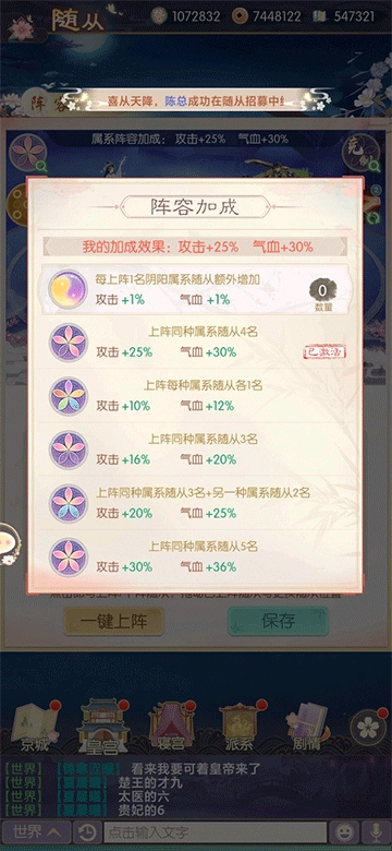 如图所示,个人最为推荐的是4 + 1这种组合方式,在贤士阁招募侍从时,应优先招募主练属性的侍从。