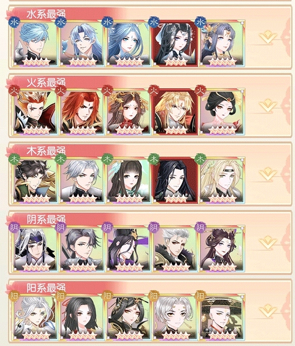 纯五系阵容,只建议阴阳玩家或者氪金大佬选择,普通玩家要是单养一个属性的队伍,游戏节奏会被拖得很慢。