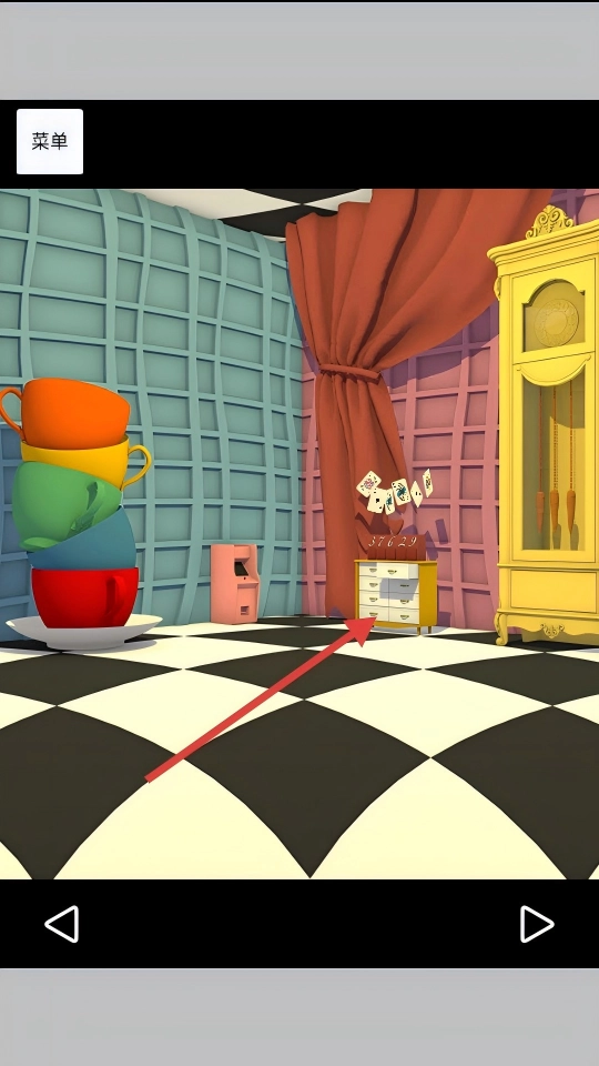 1. 踏入奇幻房间,留意彩色杯子等场景要素,点击可互动的物件(比如柜子)。