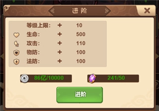 3、武将升阶能够提高其等级上限,升阶成功后便可继续升级。