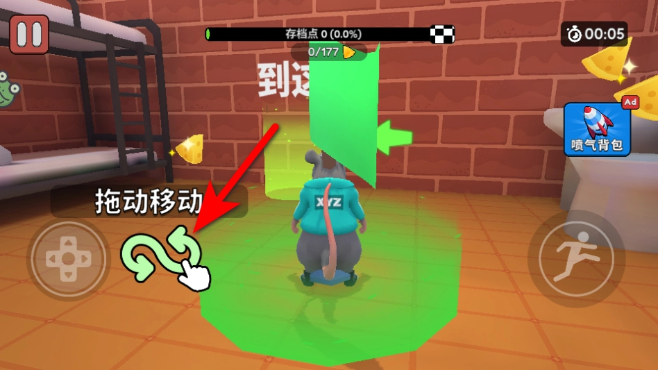 1. 操控方式为拖动屏幕,以此控制老鼠移动,在场景里展开探索,寻觅绿色传送区域,一旦进入便可抵达新场景。在这一过程中,要留意收集奶酪等道具。