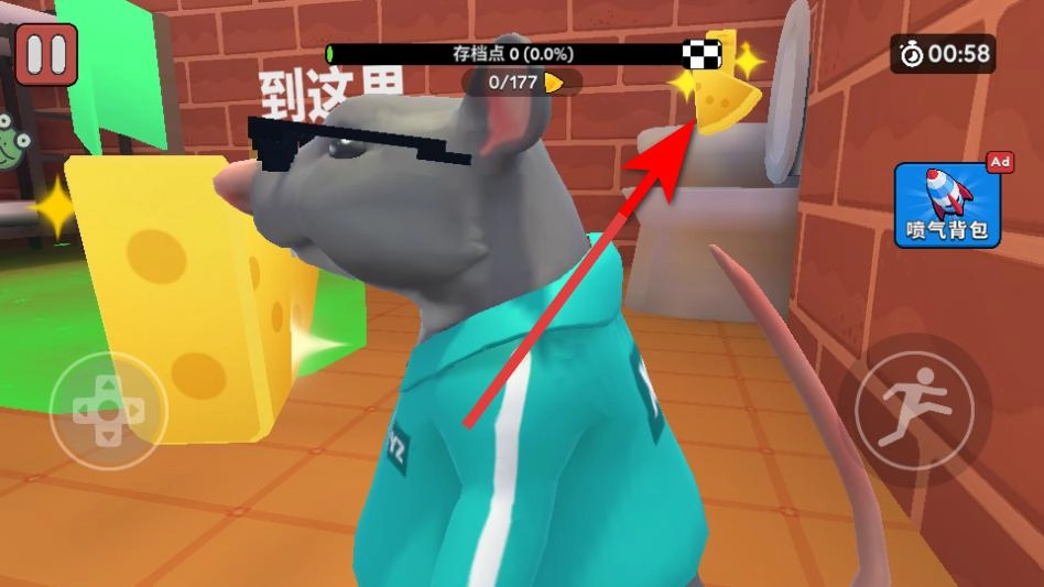 2、身处场景中,需留意四周的奶酪,主动靠近并进行收集,收集奶酪可推动收集进度。与此同时,要关注上方的存档点进度条,以此知晓任务的完成状况。
