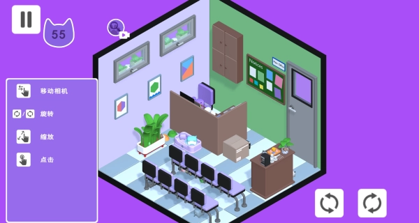 2、若从常规视角难以寻觅到小猫,可开启旋转房间功能,借助视角的切换,查看此前被遮挡的区域。