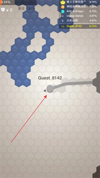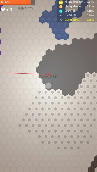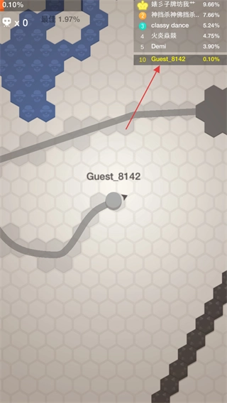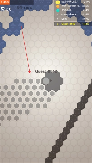 1、开启游戏,操纵代表自身的Guest_8142圆圈于六边形地图上进行移动。