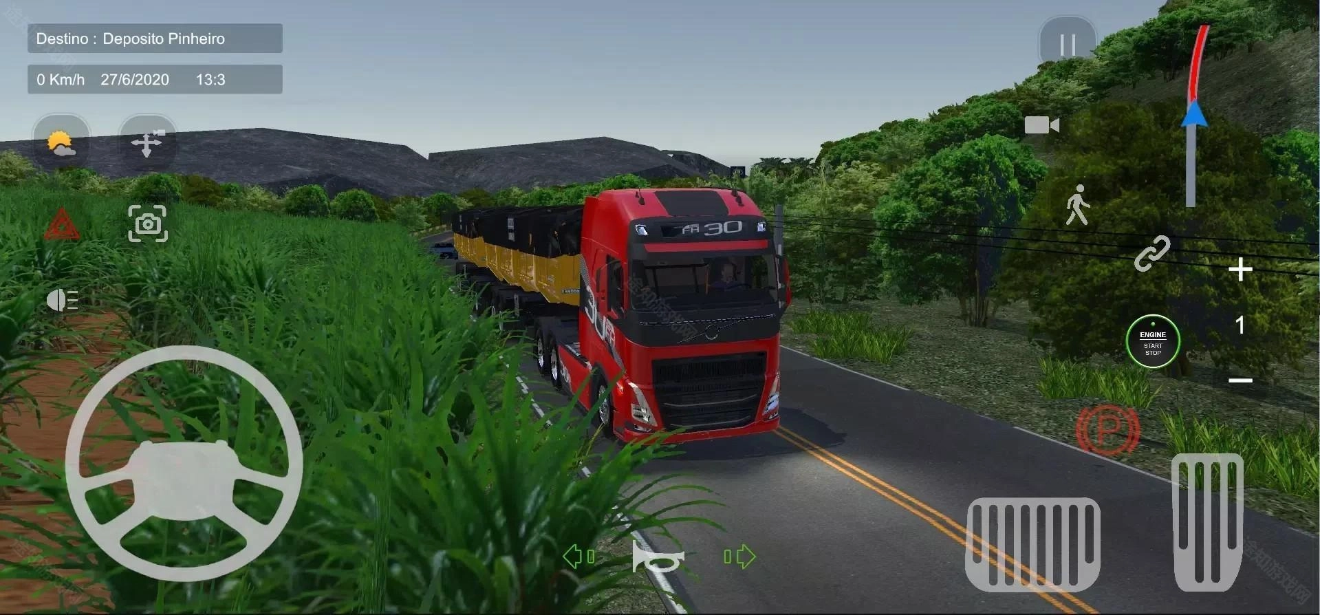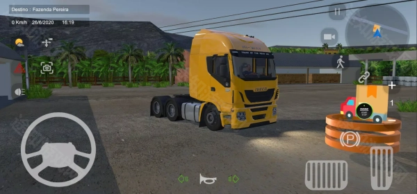 1. 该游戏支持切换多种视角,通过左边操作来控制卡车方向,右边则用于控制刹车和油门。