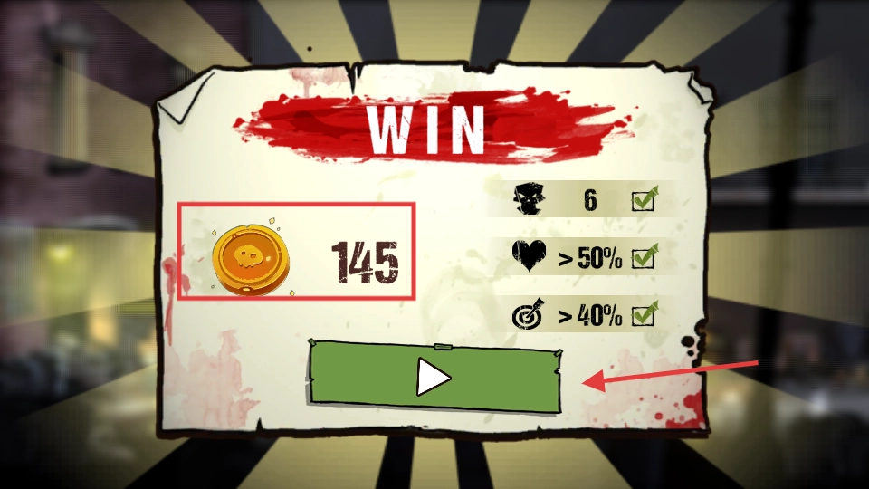 4、取得胜利后,可获得【145】金币,这些金币能够用来升级武器。若想开启下一关挑战,点击绿色按钮即可。