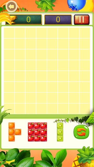 2、把下方的水果方块挪动到上方方格内,要是方块能填满一行或者一列,便可消除方块。