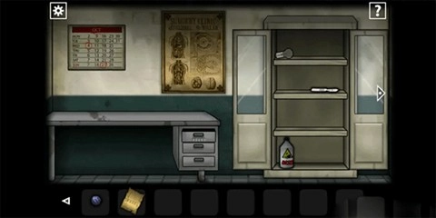 步入第四个医务室,用钥匙开启药柜,柜中放置着「灯泡」、「解剖刀」以及「酸液瓶」。