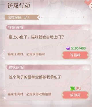 5、除了单身贵喵,在蓝颜偶遇时,还有一定概率获得双胞胎猫咪。而在蓝颜的铲屎行动里,消耗猫薄荷(猫薄荷可通过推送礼包获取),就能直接得到双胞胎猫咪。此外,在铲屎行动中,还能直接使用钻石指定特定蓝颜来获取猫咪(每次花费钻石后,下一次所需钻石会相应增加)