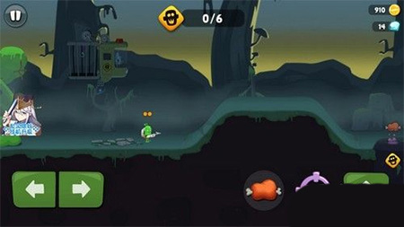 往旁边挪一挪,僵尸就会现身,这时点击钩子,用钩子勾住僵尸,就能捕捉到僵尸啦。