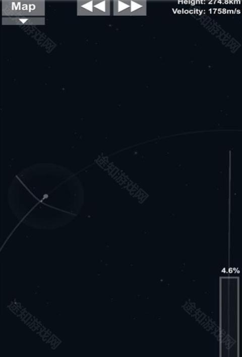 4、接着打开地图,查看火箭的轨迹是否接近月球轨道,随后将已用完的四个氮气桶分离。