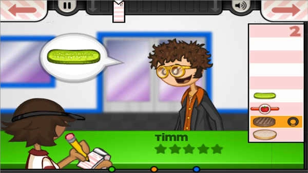 4、接着把小票拖至订单夹上,同时将汉堡递给顾客,依据顾客评分给予对应的金币。