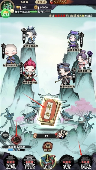4、这款游戏的核心玩法是借助拜帖来招募高级角色,以此提升自身实力,在游戏后期还能解锁主城门派等更多丰富的游戏内容。