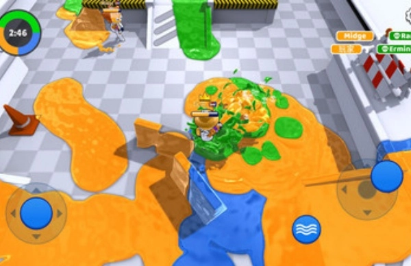 1、占领涂色玩法:通过喷射彩墨来覆盖地面,最终以己方颜色区域在整体中所占的比例,来确定基础分数。