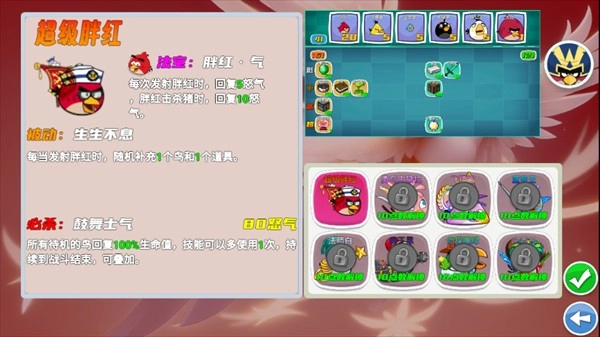 我们能够挑选自己心仪的小鸟,再为它们搭配各式各样的技能装备。