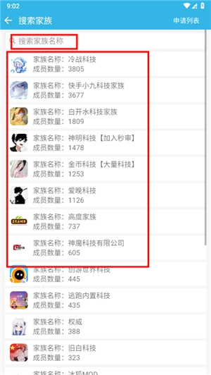 若选择加入其他家族,系统会呈现所有家族列表,同时支持通过输入家族名称进行搜索,以便快速定位到您希望加入的家族。