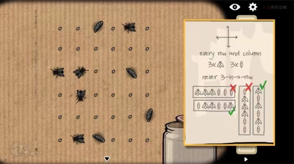 平行世界里,从玻璃瓶的视角看去,在【雪茄盒】里那张【纸上】,详细写着解锁【苍蝇小游戏】的规则说明。