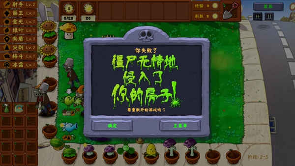 最后,当僵尸进入房子后则游戏失败结束