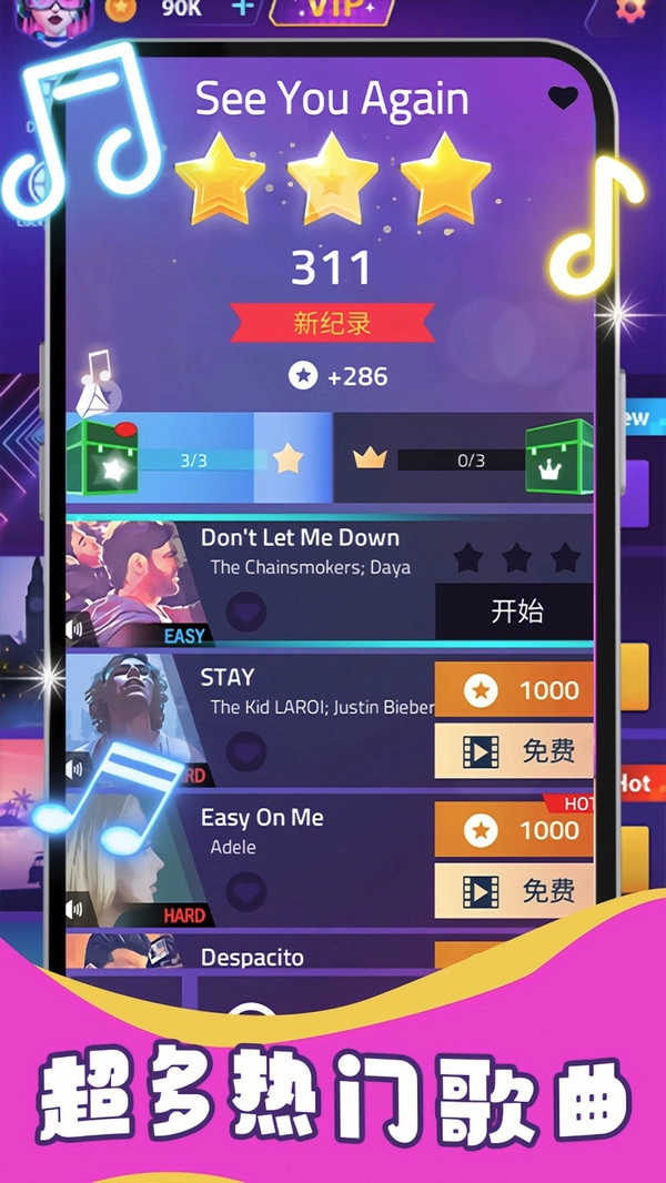 4. 丰富的挑战模式、酷炫的皮肤外观以及充满节奏感的卡点设计,让玩家在享受音乐的同时,也能体验到紧张刺激的游戏乐趣。