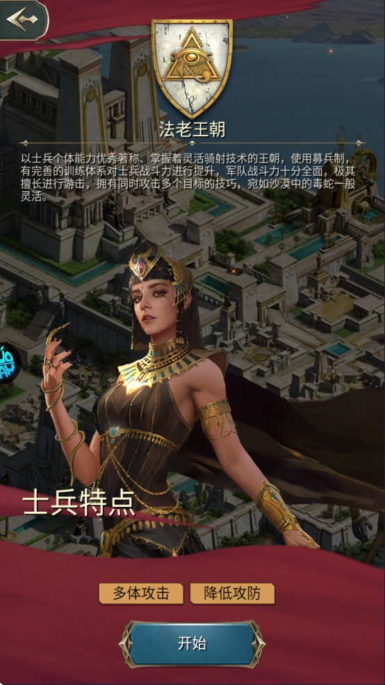 游戏涵盖华夏、爱琴海与法老三大文明体系,各文明均配备独特的专属兵种、独立的科技树系统以及别具一格的战斗风格设定。