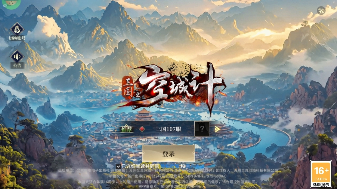 启动三国题材的空城计游戏,完成账号注册与登录操作后,点击登录按钮即可进入游戏环节。