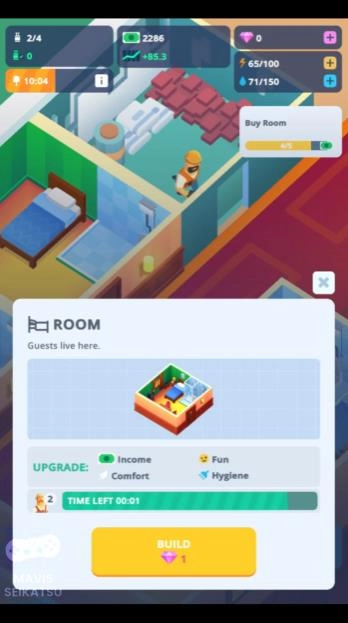 点击建造,开始扩展你的酒店空间。