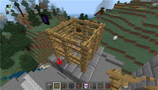 然后在里面放置一个村民;