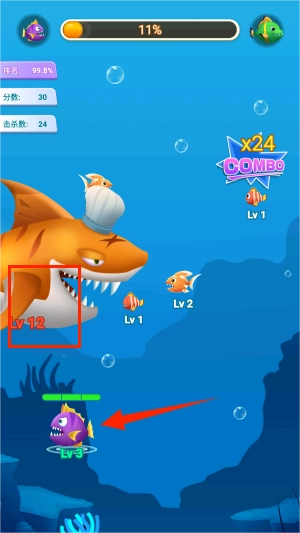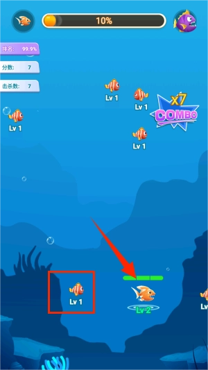 超级进化鱼保留了经典的大鱼吃小鱼核心玩法,同时开启了全新的海洋生存冒险。在湛蓝的海底世界里,你需要操控小鱼持续进食来成长,通过吞噬体型比自己小的鱼类实现进化与升级。游戏还专门设置了等级标识机制,你既要抓住捕食的时机,也要随时留意躲避强大掠食者的追捕。