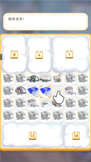 接下来玩家可以把相同的物品左右移动合并。